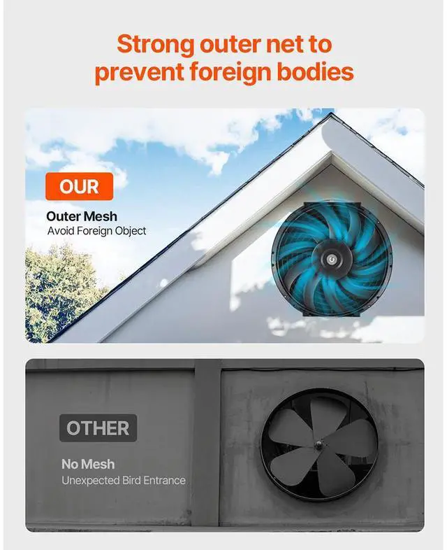 VEVOR 12 Inch Gable Mount Fan 1300 CFM Attic Exhaust Fan with Adjustable Thermostat