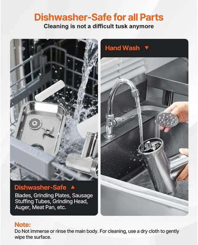 Item Model Number: 1A-EG105,Product Weight: 24.3 lbs / 11.0 kg,Grinding Capacity: 5 lbs/minute,Mouth Size: 5#,Power: 300W,Main Material: Stainless Steel,Product Size: 17.4 x 8.7 x 14.6 inch / 443 x 220 x 370 mm