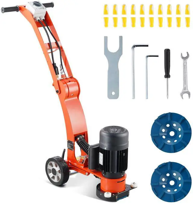 VEVOR Electric Concrete Floor Grinder 7" Walk-Behind Grinder 1.7HP Concrete Floor Polisher, 1300W Grinding Machine, 1720RPM Upgrade Brushless Motor Surfacing Grinder for Granite/Marble/Stones