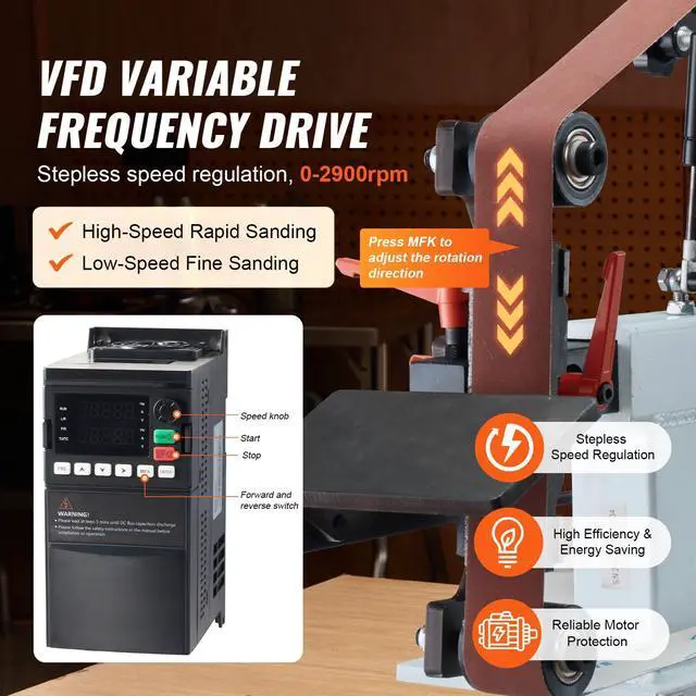 VEVOR Belt Grinder Sander, 72 x 2-Inch Variable Speed Belt Polisher with VFD, 1500W 2HP Polishing Grinding Machine with 3 Grinding Moulds & 3PCS Sanding Belts for Metalworking, Knife Making