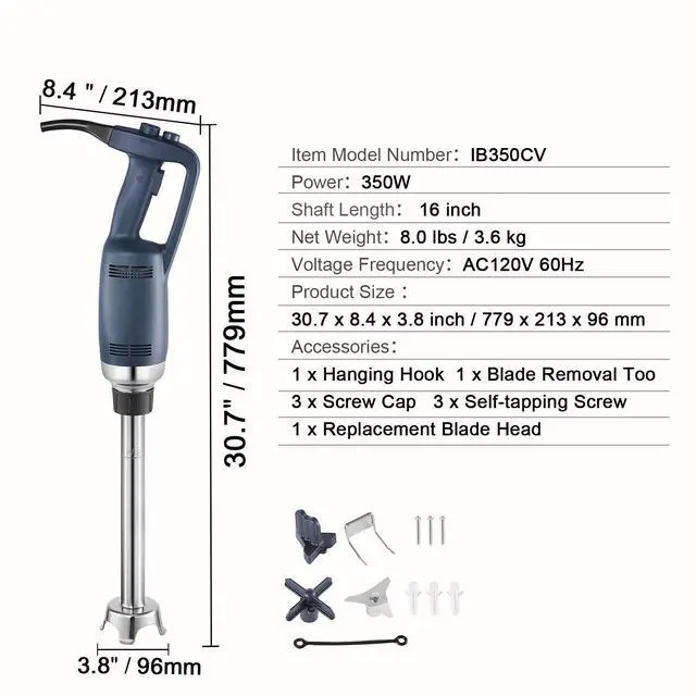 Shaft Length: 16 inch,Voltage Frequency: AC120V 60Hz,Item Model Number: IB350CV,Net Weight: 7.9 lbs / 3.6 kg ± 5%,Power: 350W ±15%,Product Size: 30.7 x 8.4 x 3.8 inch / 779 x 213 x 96 mm