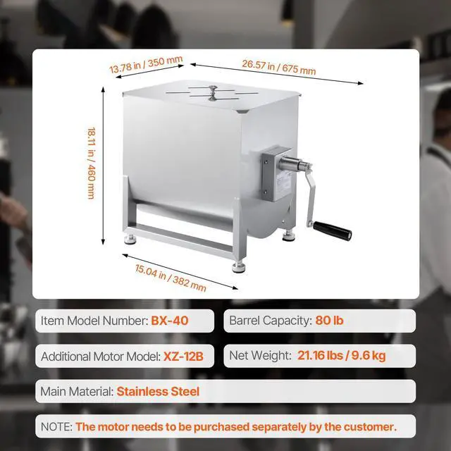 Manual Meat Mixer 80L Fixed Tank Mixing Max 80LB for Meat Sausage Mixer Machine