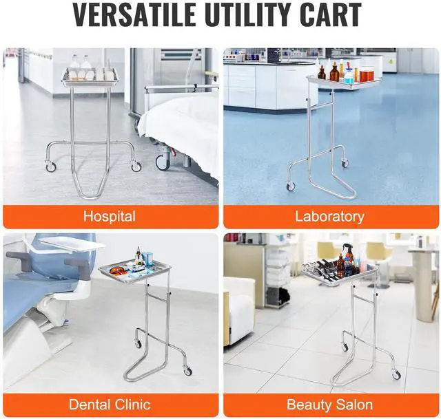 VEVOR Stainless Steel Lab Cart with Single Tray & 2 Silent Wheels for Lab Clinic, Lab Serving Cart Utility Cart Stainless Steel Medical Cart, Lab Carts with 1 Drawers & Top Tray, Lab Rolling Cart for Lab, Clinic, Hospital, Salon, Office