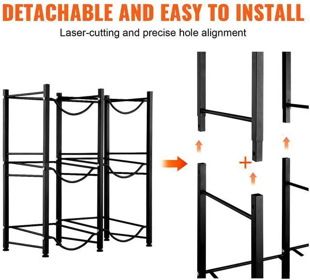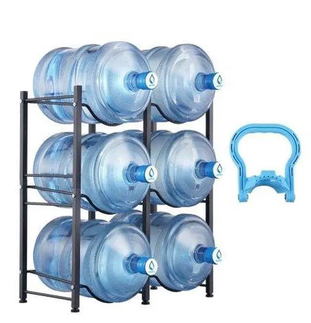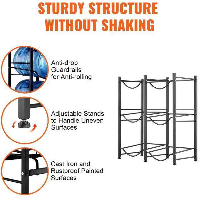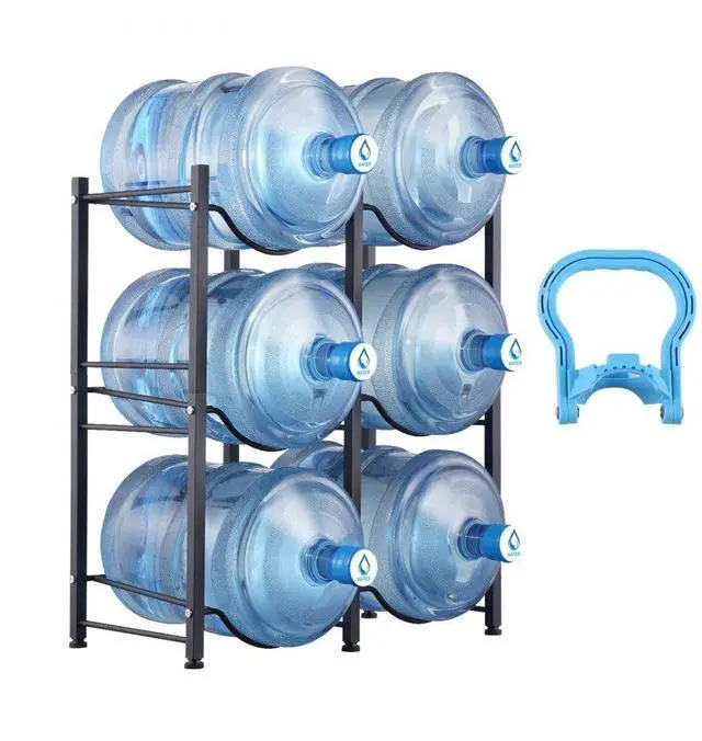 VEVOR 3 Tiers Water Jug Holder Double Row Water Bottle Rack for 6 Bottles Storage Detachable Heavy Duty Water Jug Organizer Stand for Home Office Kitchen Black, Detachable Water Storage Shelf Organizer for Home Living Room Office