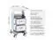 Tray: PC, 12.6 x 15.7 in / 320 x 400 mm; Depth 30 mm / 1.2 in; Tray Thickness 3 mm,Wheels: PA6, Diameter 2.6 in / 65 mm, Wheel Width 2.1 in / 53 mm, 4 wheels (2 with Brakes),Item Model Number: FY-1T2C,Product Weight: 38 lbs / 17.2 kg,Max Load Capacity: 110 lbs / 50 kg,Drawer: ABS, 12.8 x 8.5 x 3.7 in / 325 x 215 x 95 mm,Product Dimensions: 19.06 x 14.25 x 29.75 in / 485 x 363 x 745 mm