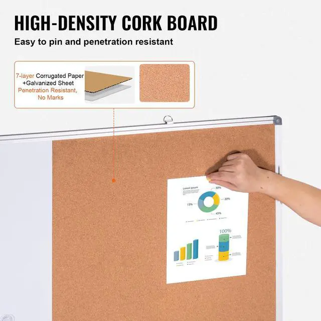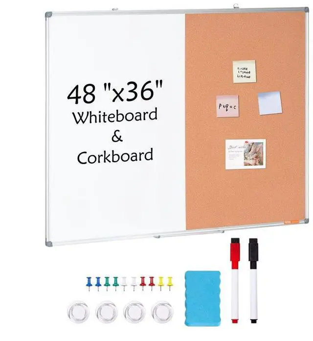 VEVOR 48"x 36" Whiteboard & Cork Board Combo with Aluminum Frame 2-in-1 Magnetic Dry Erase Bulletin Board for Wall Mount Ideal for School, Home, Office