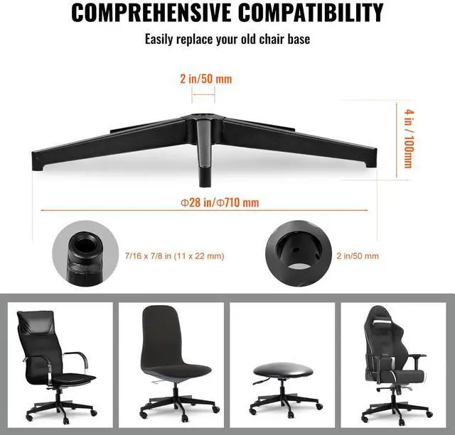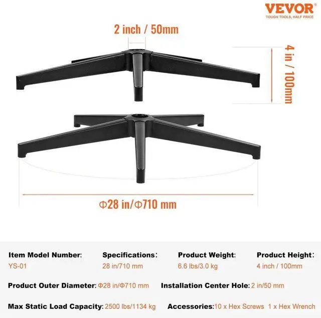 VEVOR Office Chair Base Replacement 28" Heavy Duty Metal Stool Base 2500 lbs
