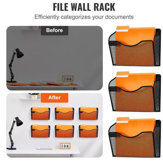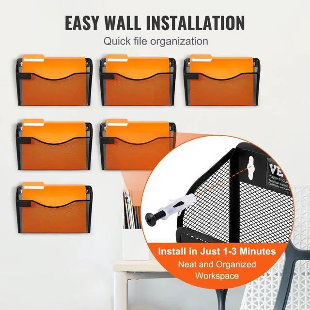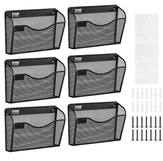 VEVOR Hanging Wall Files Organizer, 6 Pack Single Pocket Mesh Wall File Holder, Metal Wall Folder Organizer with Nametag Label, for Office Home & School