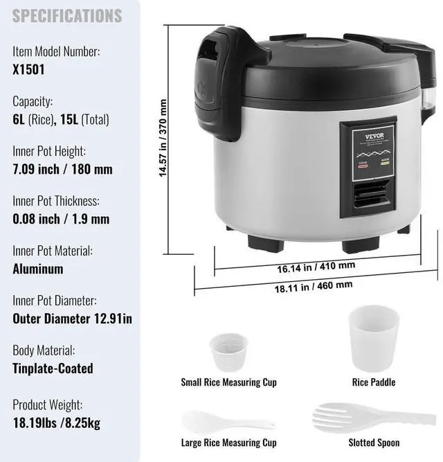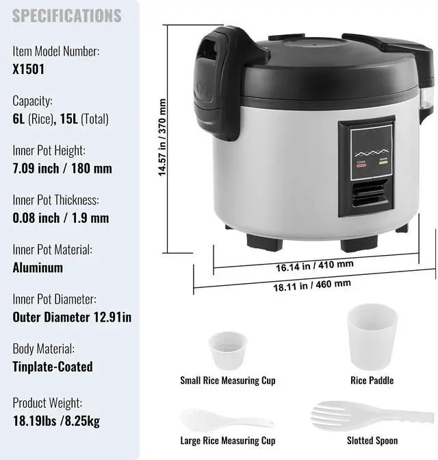 Capacity: 6L (Rice), 15L (Total)