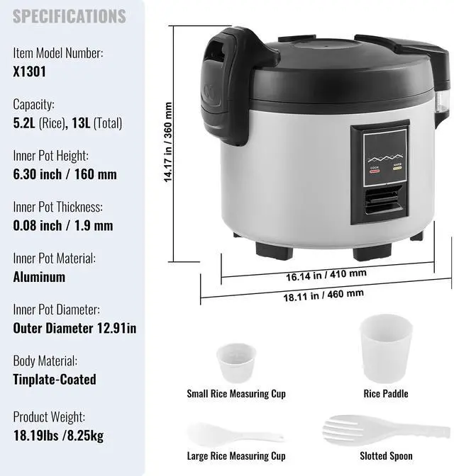 Inner Pot Diameter: Outer Diameter 12.91 inch / 328 mm