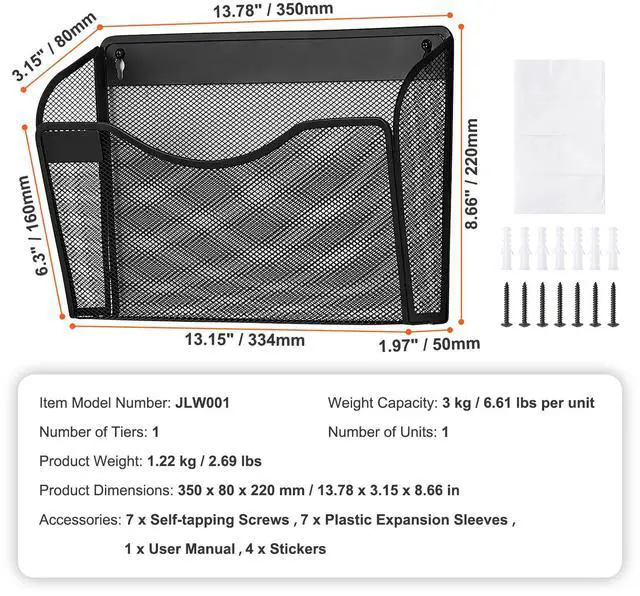 Weight Capacity: 3 kg / 6.61 lbs per unit