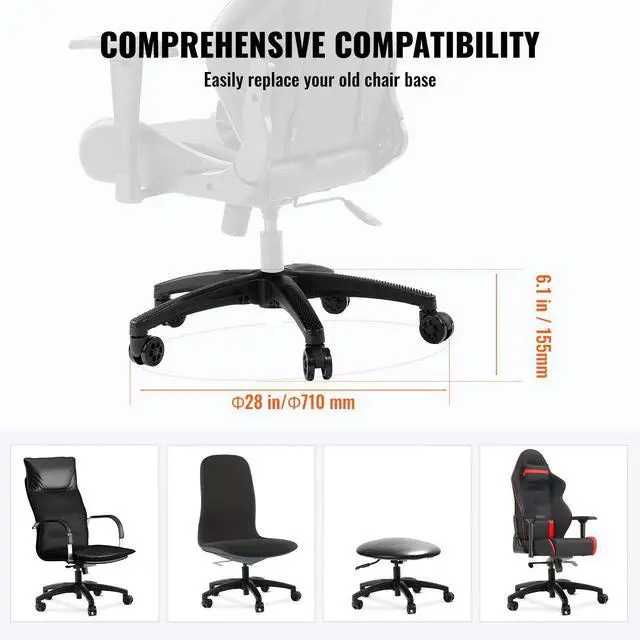 Universal Fit for Most Chairs: Upgrade your office chair with this versatile office chair base! Measuring 28 inches wide with a five-pointed star design, it fits most chairs thanks to its standard hole pattern. Available in various colors and cool patterns, it's the perfect match for gaming chairs, office chairs, and executive chairs alike.