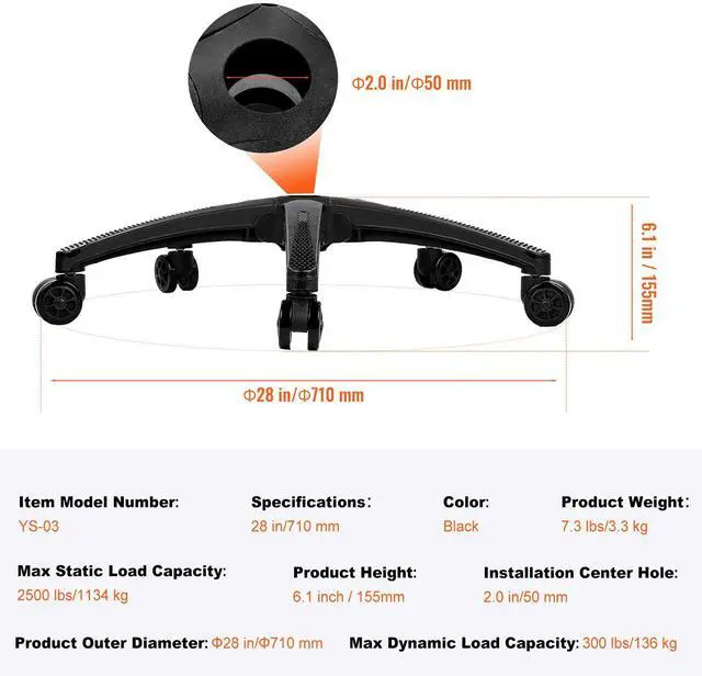 Sturdy and Durable: Made from high-quality nylon, this office chair base replacement is tough and reliable. It handles frequent swiveling and movement with ease, staying stable even with heavy use. Enjoy a sturdy seat that supports you day in and day out.