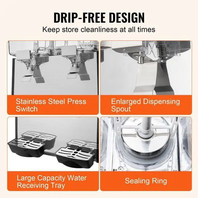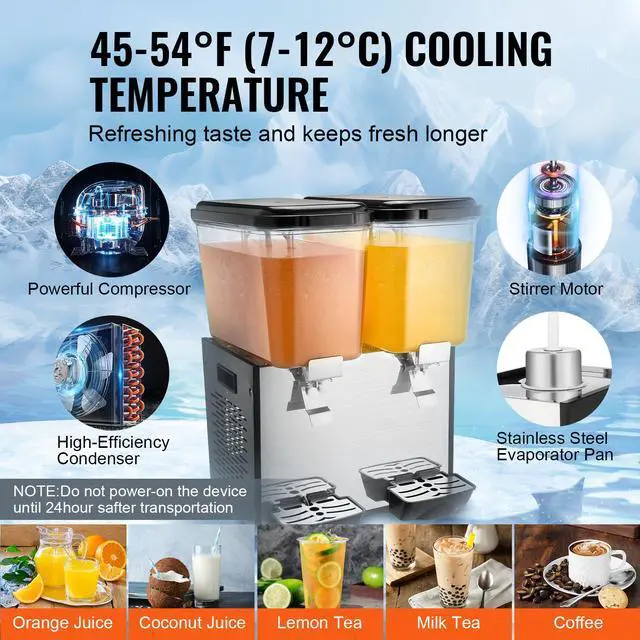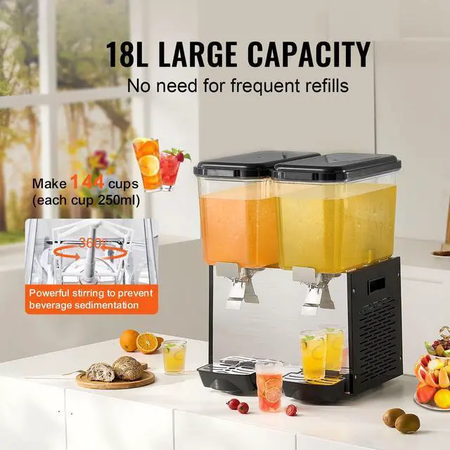 VEVOR Commercial Beverage Dispenser 18L x 2 Tanks Cold Juice Ice Drink Dispenser