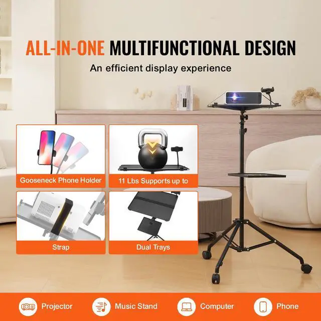 VEVOR Projector Stand, Projector Floor Stand Adjustable Height from 31.3 to 67.3 in, DJ Equipment, Projector Mount with Tray, Ideal for Outdoor Movies, Home, Office, Stage and Studio, Max Load Capacity 22 lbs With Wheels, Black