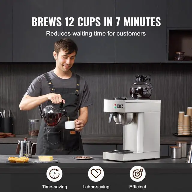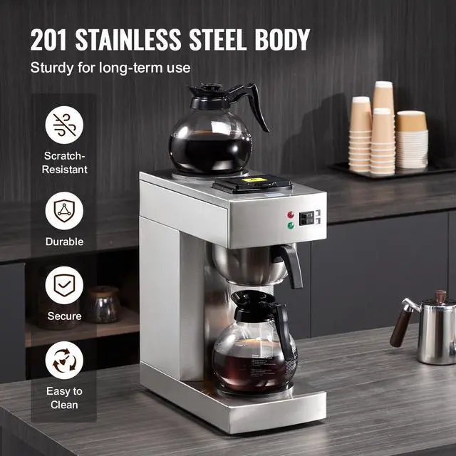 12 Cups Commercial Drip Coffee Maker with 2 Glass Carafes and 2 Warmers Office