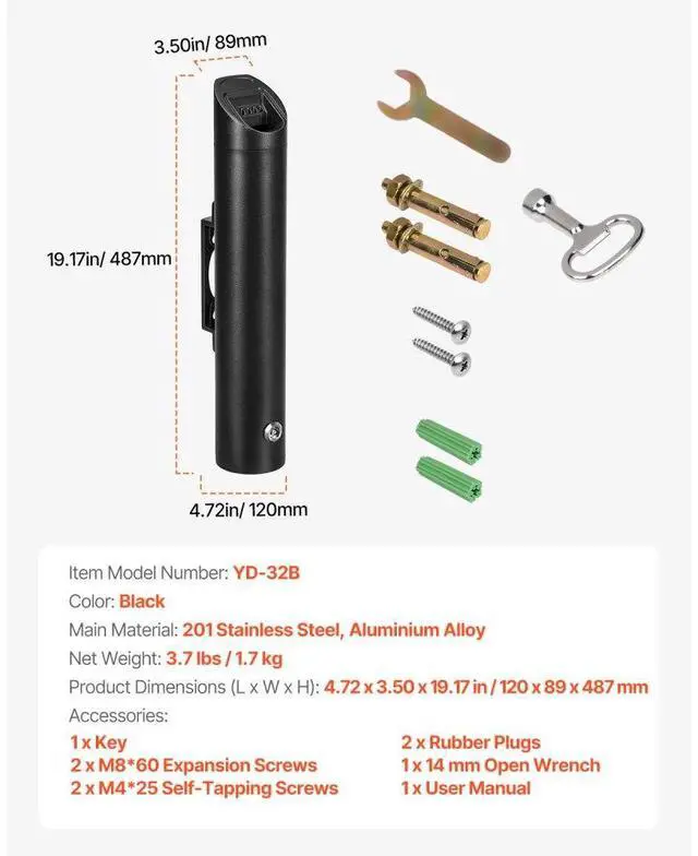 Color: Black,Item Model Number: YD-32B,Product Dimensions (L x W x H): 4.72 x 3.50 x 19.17 in / 120 x 89 x 487 mm,Net Weight: 3.7 lbs / 1.7 kg,Main Material: 201 Stainless Steel, Aluminium Alloy