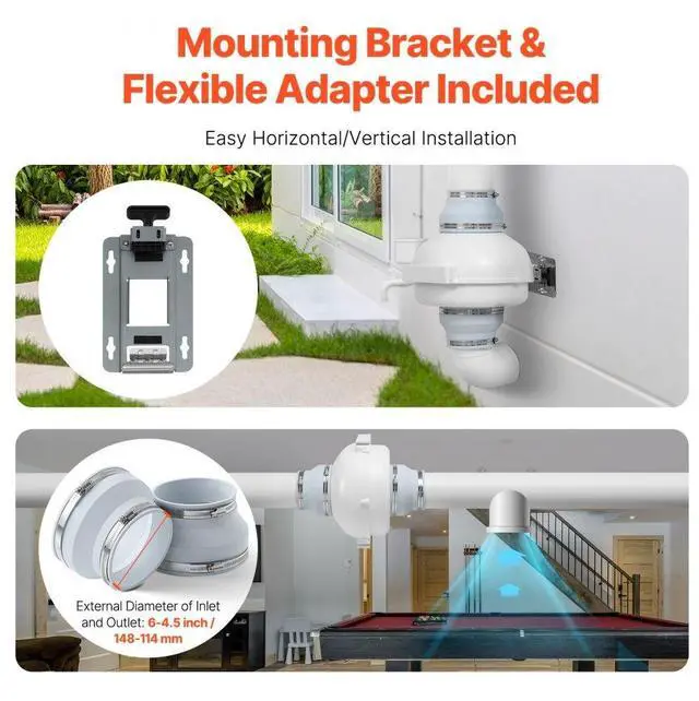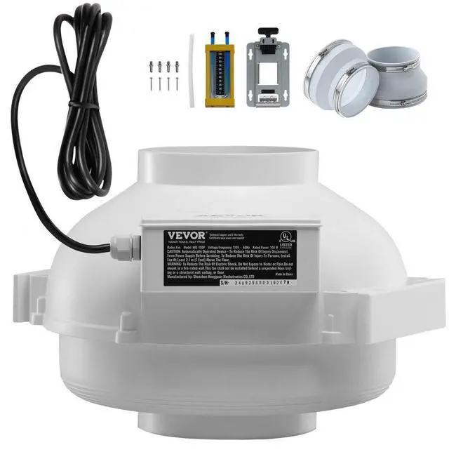 6" to 4.5" Radon Mitigation Fan System Kit Quiet 380 CFM Inline Duct Waterproof