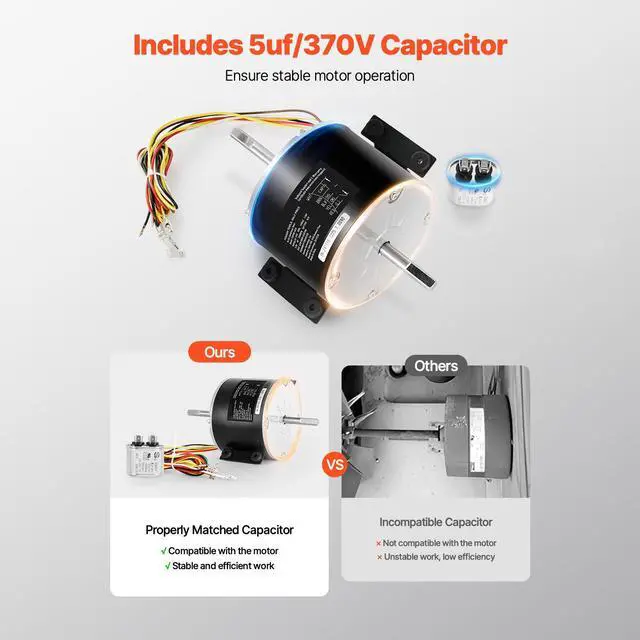 1/4HP RV AC Fan Motor AC115V 3A 1650RPM Single Phase with 5uf/370V Capacitor