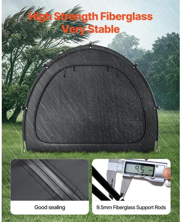 Shape: Fan-Shaped,Door Open Type: Front and Back Dual Opening,Capacity: 5+ Bicycles,Color: Black,Item Model Number: BYSKU7,Material: Oxford Fabric + Fiberglass Support Poles,Product Dimensions: 67.20 x 84.00 x 96.00 in (1706 x 2133 x 2438 mm),Net Weight: 6.20 kg / 13.67 lbs