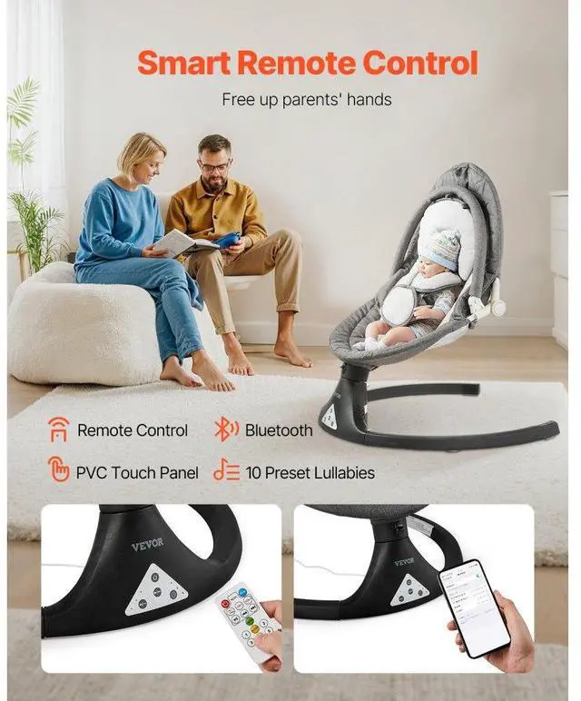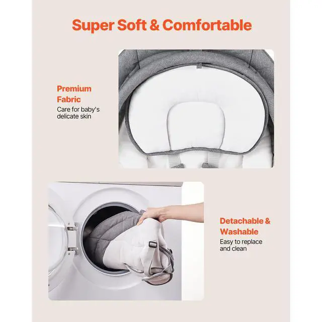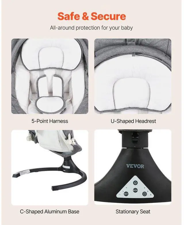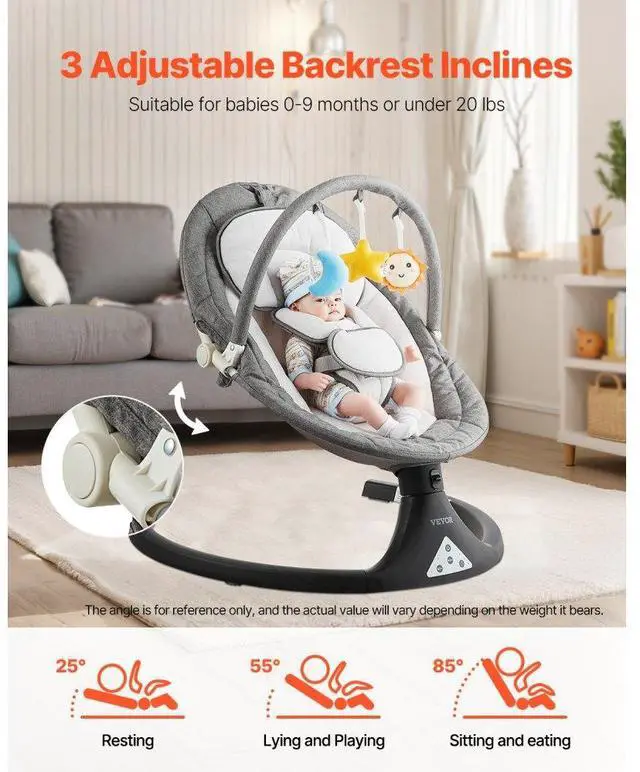 Baby Swing for Infants 5 Speeds 3 Seat Positions Remote Control Toy Bar 3 Toys