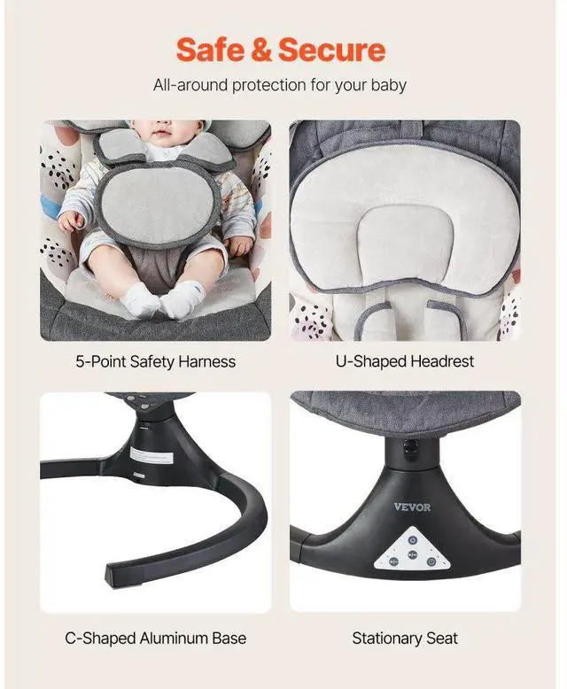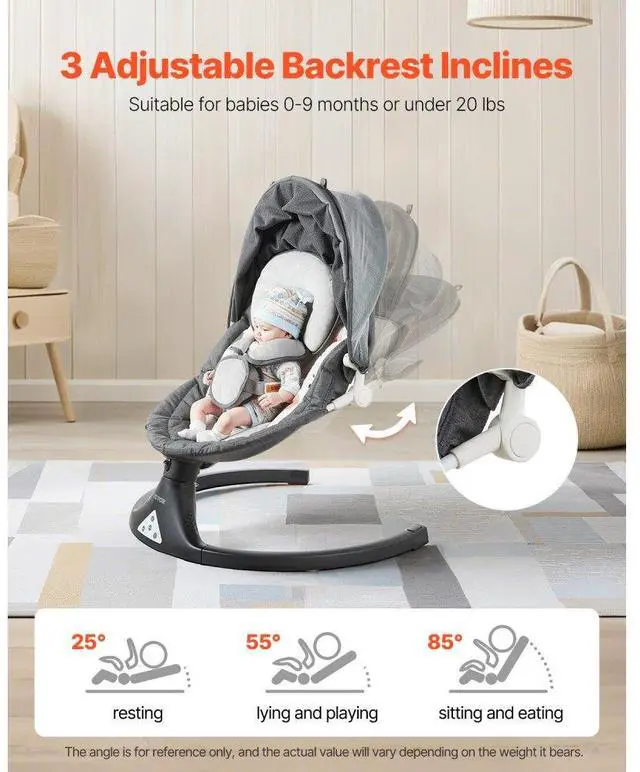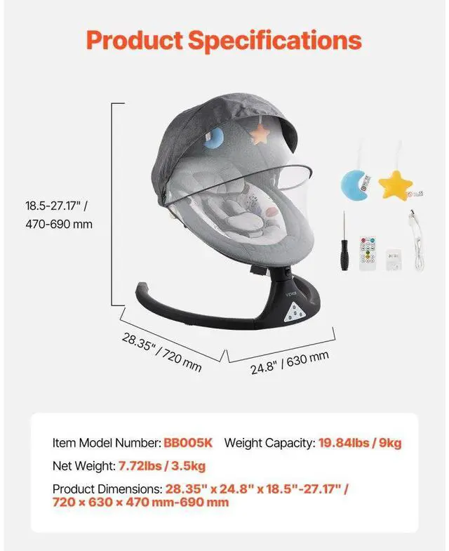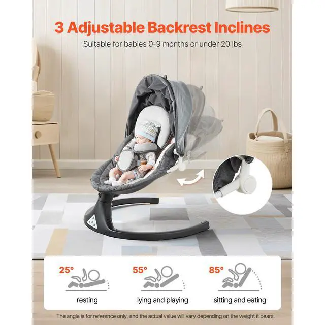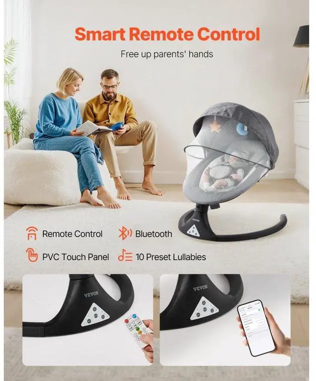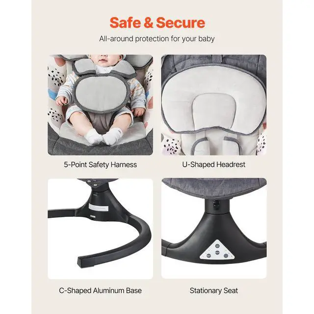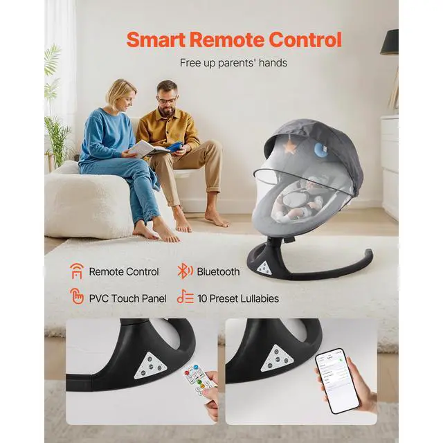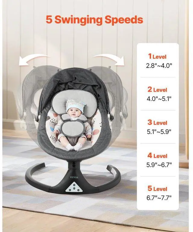 Baby Swing for Infants 5 Speeds 3 Seat Positions Remote Control Bluetooth 2 Toys