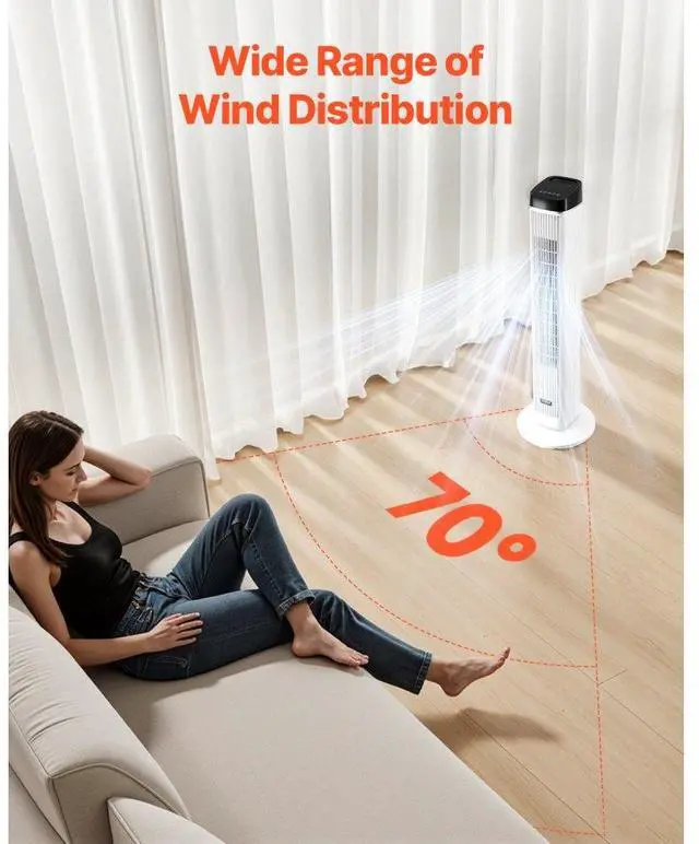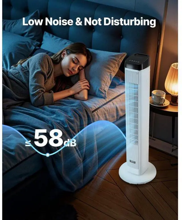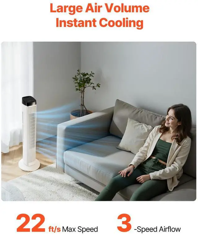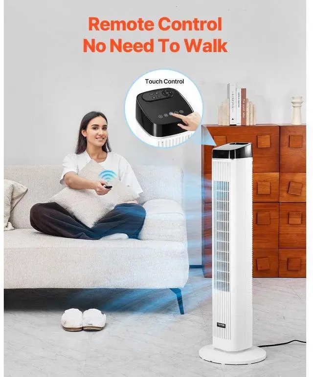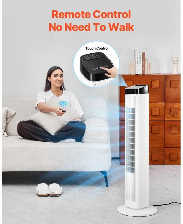 40" Oscillating Tower Fan 9H Timer 22 ft/s High Velocity with Remote Control