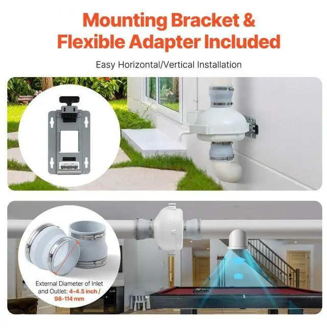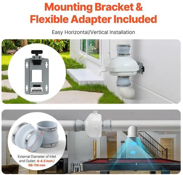 4" to 4.5" Radon Mitigation Fan System Kit Quiet 190 CFM Inline Duct Waterproof