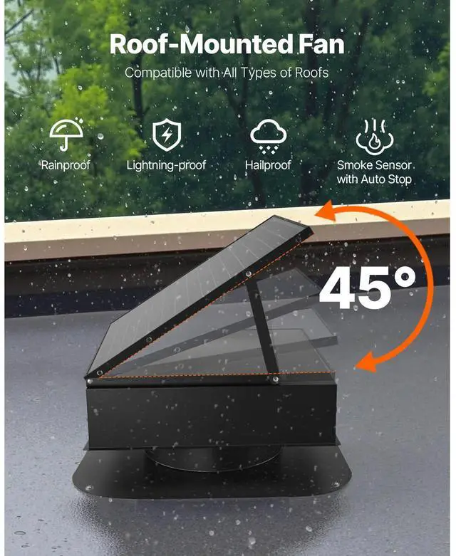 VEVOR Solar Roof Attic Exhaust Fan 35W with Smart Thermostat Brushless DC Motor