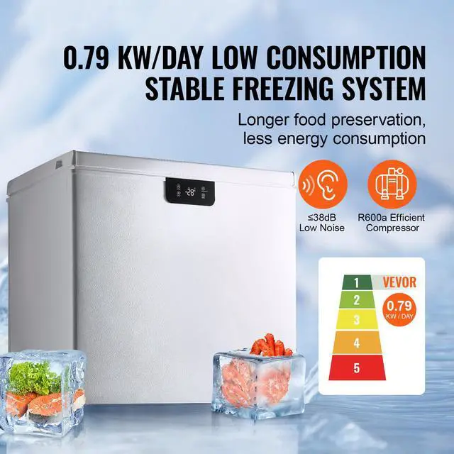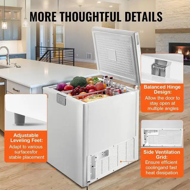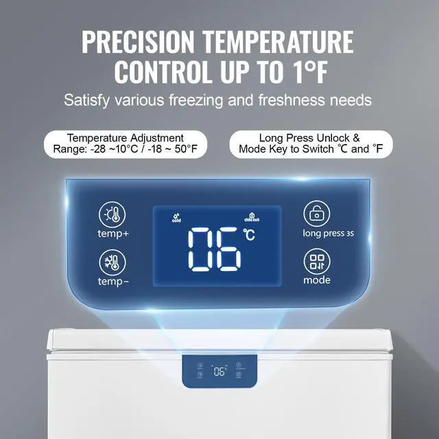 VEVOR Chest Freezer, 7 Cu.ft / 198 L Compact Deep Freezer, Free Standing Top Open Door Compact Freezers with 2 Removable Baskets & Adjustable Thermostat, Energy Saving & Low Noise, White
