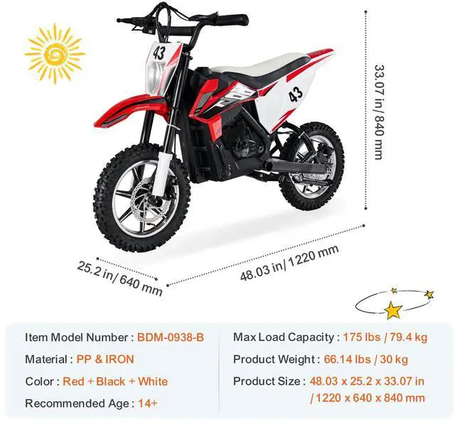 • Kids Ride on Motorcycle 36V Electric Motorbike with LED for Kids Aged 14+
