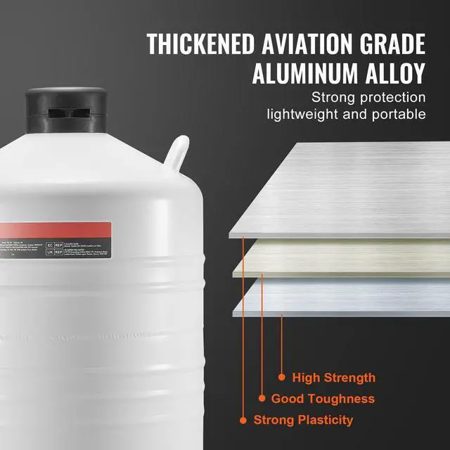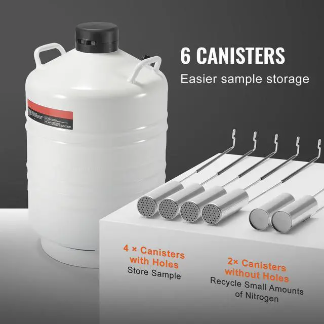 VEVOR Liquid Nitrogen Tank 30 L Aluminum Alloy LN2 Container Dewar 6 Canisters