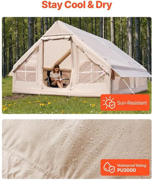 Hand Pump: 1500CC, 29PSI,Color: Beige,Item Model Number: ZJTM1361,Product Weight: 40.72 lbs / 18.47 kg,Air Column Material: PVC + Mesh Fabric,Tent Material: 300D Oxford Cloth,Product Size: 157.48 x 118.11 x 78.74 in / 4 x 3 x 2 m