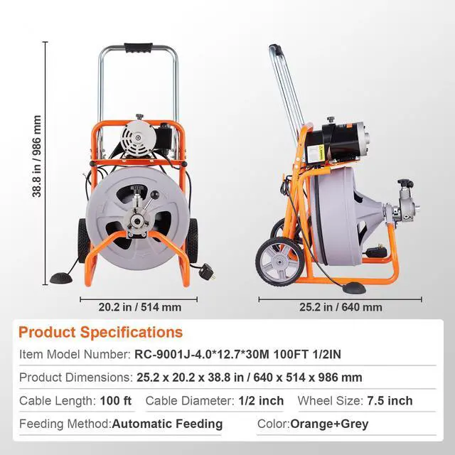 Wheel Size: 7.5 inch,Color: Orange + Grey,Item Model Number: RC-9001J-4.0*12.7*30M 100FT 1/2IN,Feeding Method: Automatic Feeding,Cable Diameter: 1/2 inch,Cable Length: 100 ft,Product Dimensions: 25.2 x 20.2 x 38.8 in / 640 x 514 x 986 mm,Net Weight: 90.4 lbs / 41 kg (including all accessories)