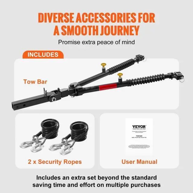 VEVOR Tow Bar Bumper Mount Tow Bar 10000 lbs Fits 2-inch Connector with Ropes