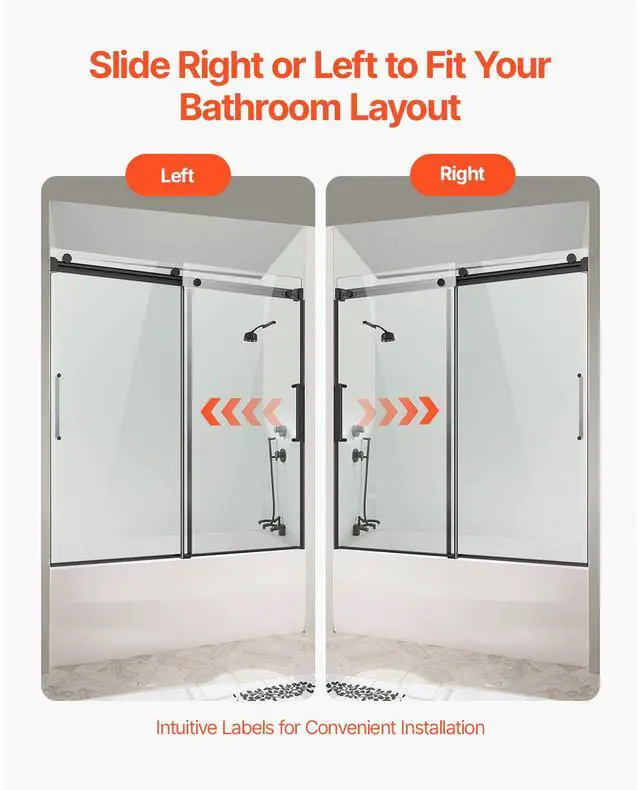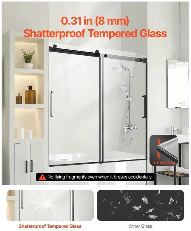 Frameless Sliding Bathtub Door 56-60 in.W x 60 in.H Frameless Shower Glass Door