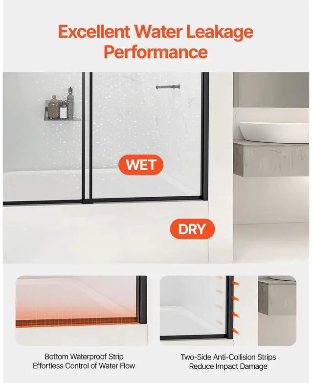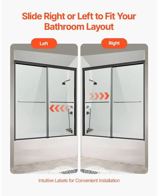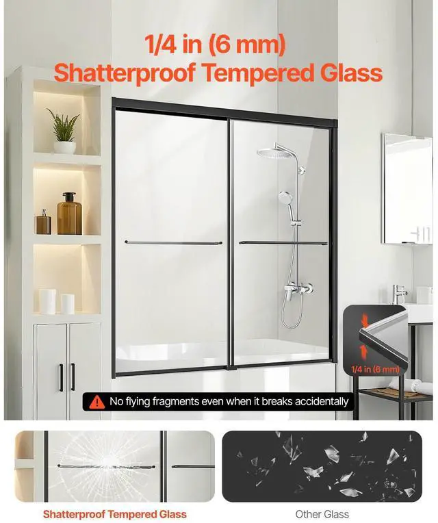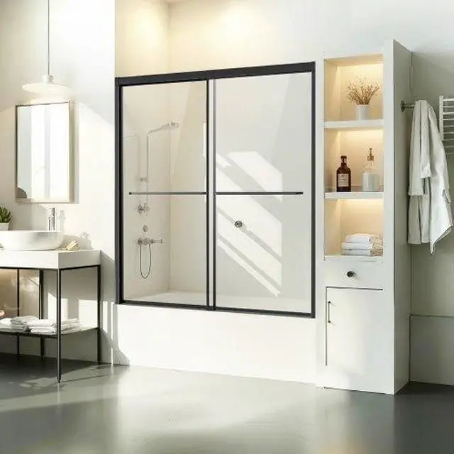 Bathtub Shower Door 50-60 in. W x 60 in. H Semi-Frameless Bypass Tub Door Black
