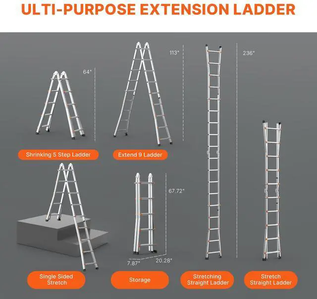 VEVOR Telescoping Ladder A Frame 19 FT Extension Multi-Function for Homework