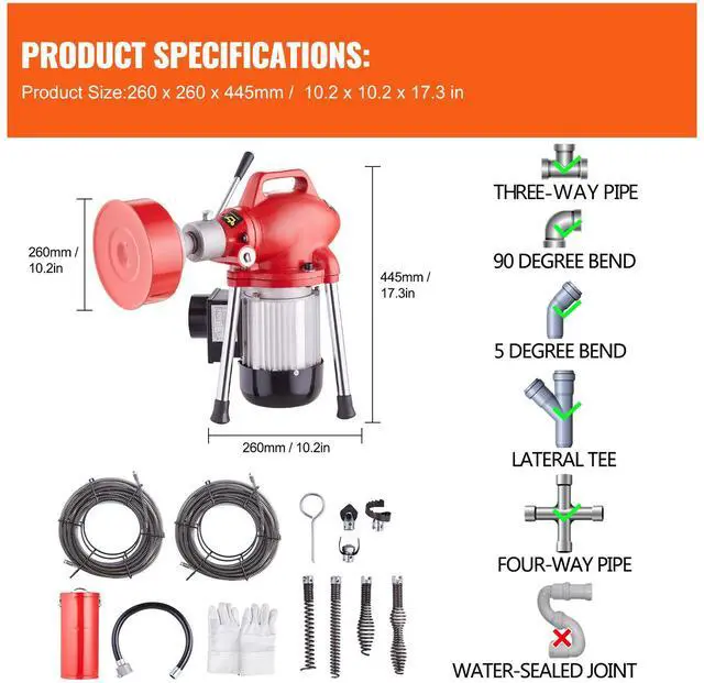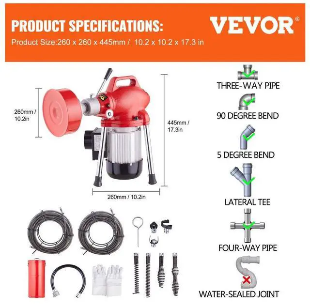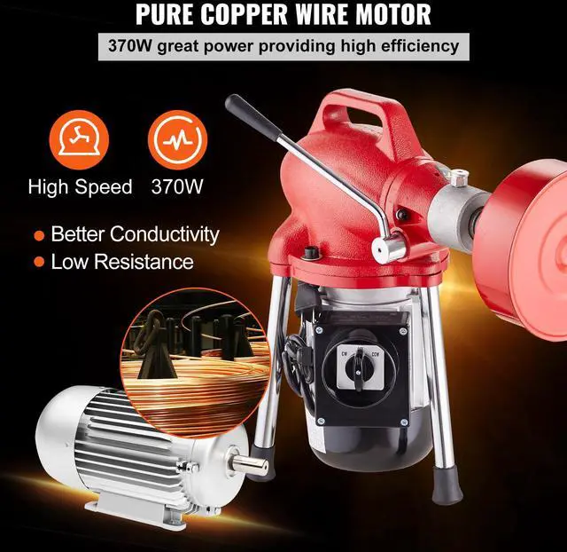 VEVOR Drain Cleaner Machine 120FT x 5/8In 370W Sectional Snake Auger Manual Feed