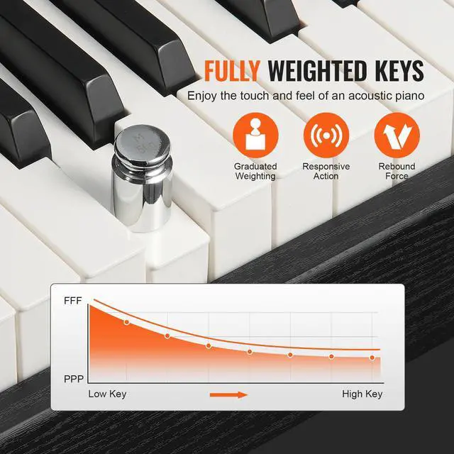 • VEVOR 88 Key Fully Weighted Digital Piano Dual Keyboard Cabinet Bracket Bench