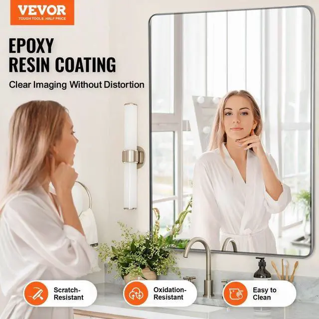 Square Wall Mounted Mirror 36" x 48" Mirror with Aluminium Alloy Frame