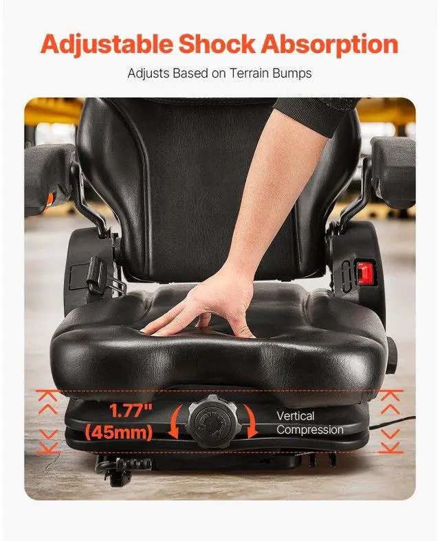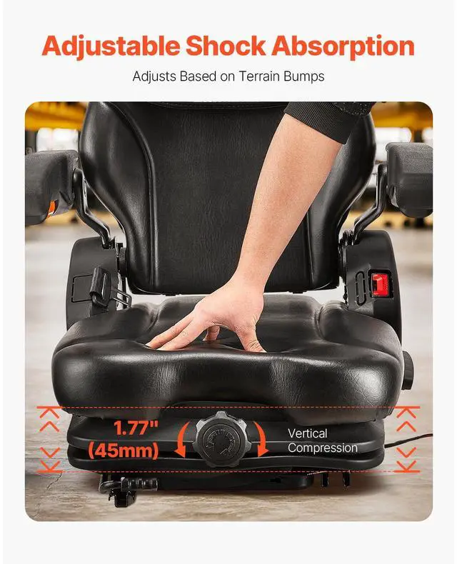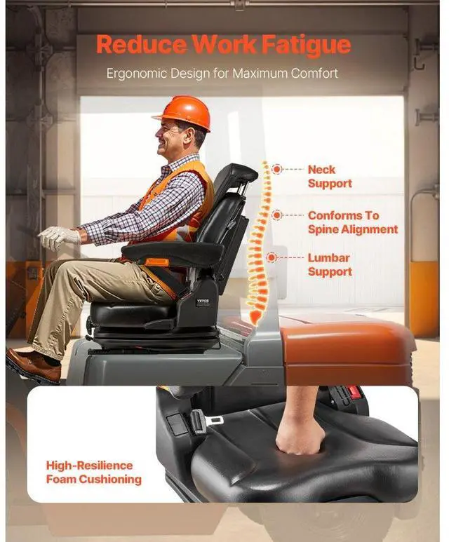 Forklift Seat Fold Down Tractor Suspension Seat Adjustable Back & Headrest