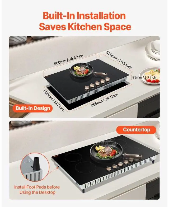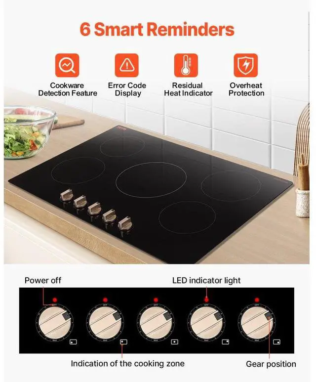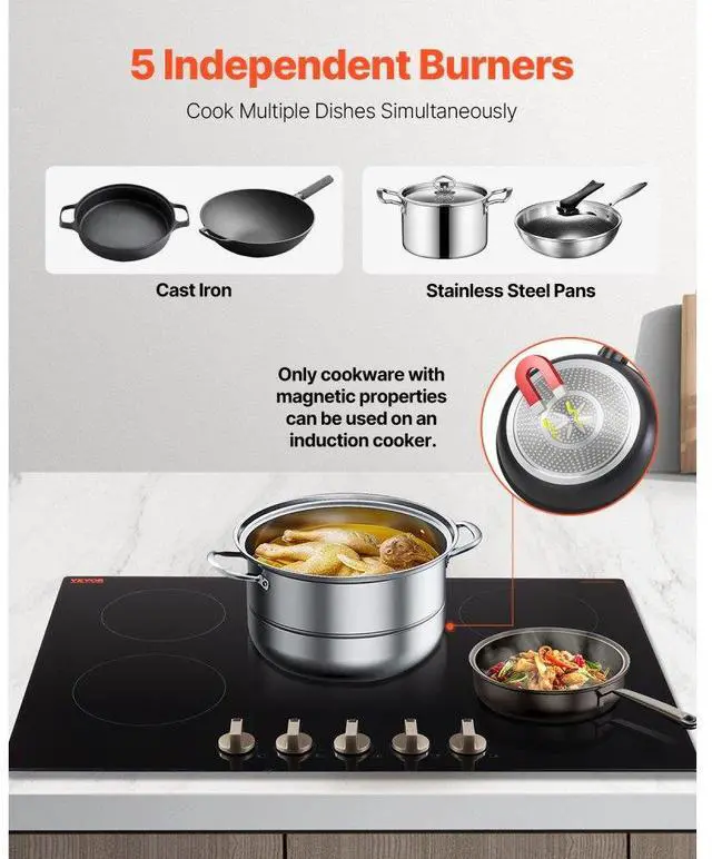 VEVOR 9200W 5 Burner Induction Cooktop Electric Countertop Burner Knob Control
