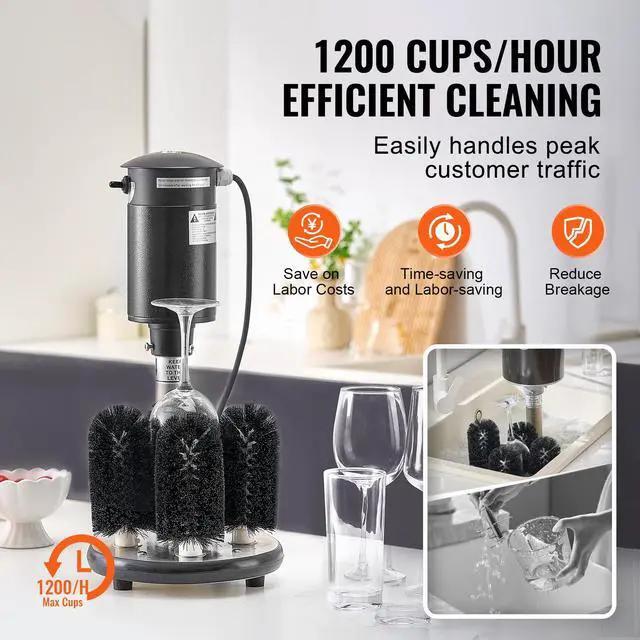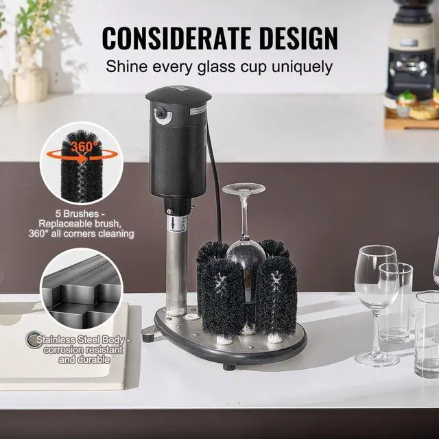 VEVOR Electric Glass Washer 5-Brush Bar Glass Cleaner 1200 Cups/H for Wine Glass