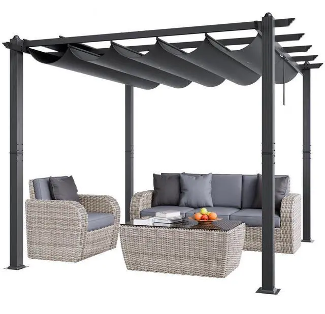 VEVOR 10'x10' Outdoor Retractable Pergola with Sun Shade Canopy Aluminum Gray