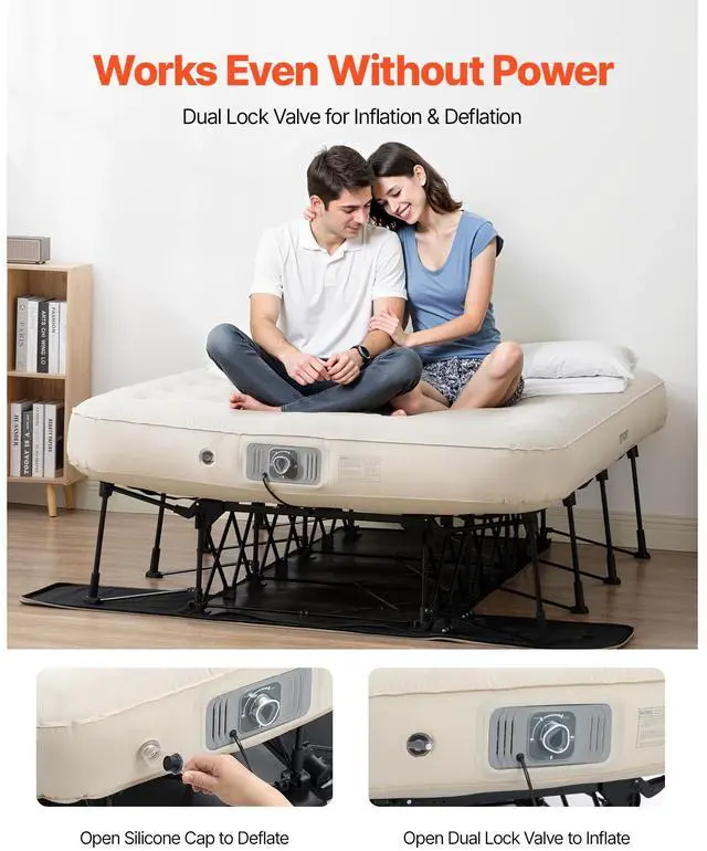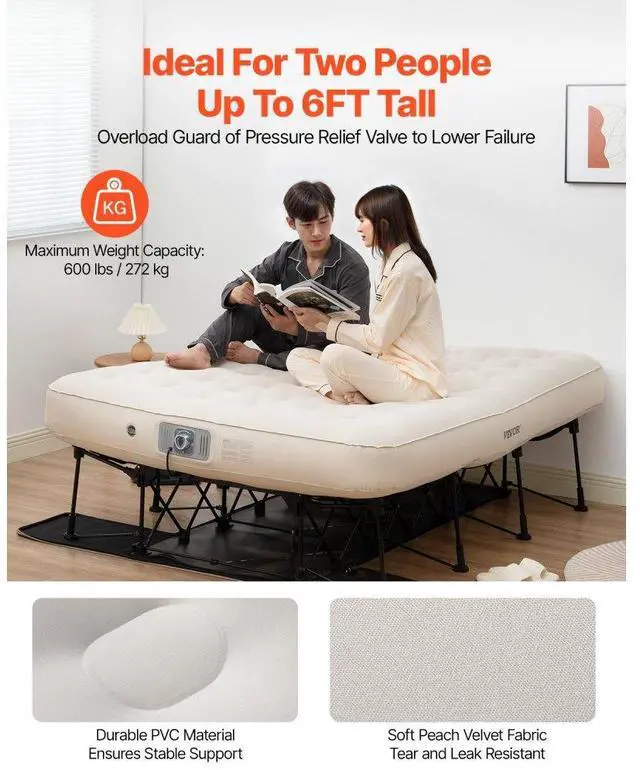 VEVOR Air Mattress with Frame, Inflatable 2 Person Camping Cot with Built-in Pump, Portable Folding Air Beds Supports 600 lbs, Blow Up Anywhere Bed for Guests Camping Travel Indoor & Outdoor Use