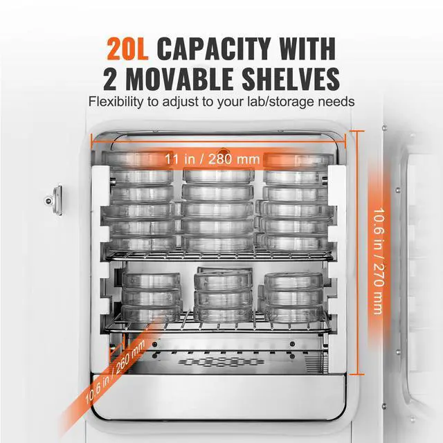 VEVOR Microbiological Lab Incubator 20L Precise Temp Control from 0°C to 70°C