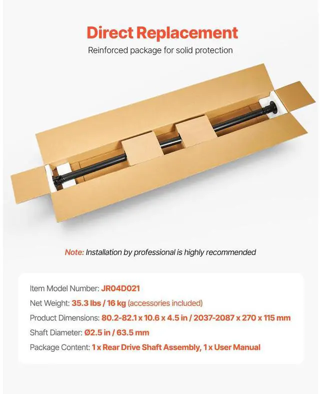 Item Model Number: JR04D021,Shaft Diameter: Ø2.5 in / 63.5 mm,Product Dimensions: 80.2-82.1 x 10.6 x 4.5 in / 2037-2087 x 270 x 115 mm,Net Weight: 35.3 lbs / 16 kg (accessories included)