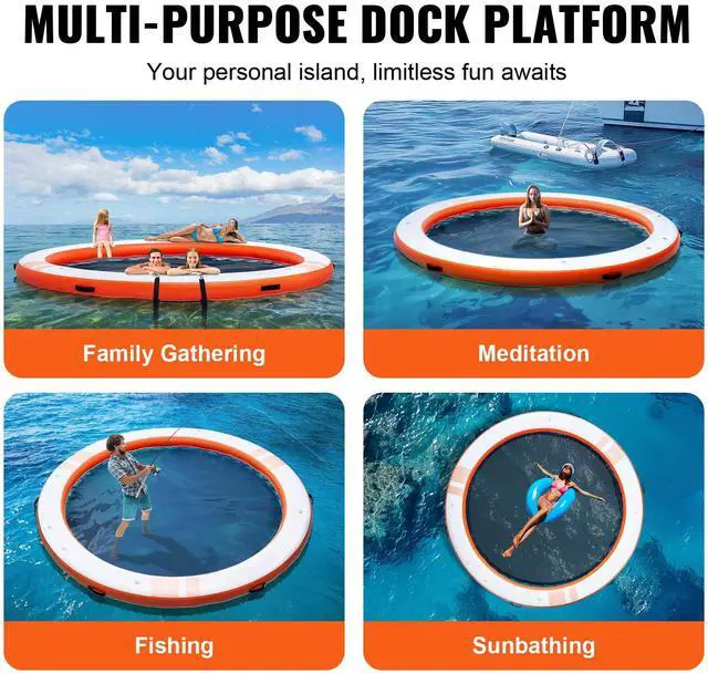 VEVOR Inflatable Floating Dock, ø8FT Inflatable Dock Platform with ø5FT Trampoline Mesh Pool, Non-Slip Floating Platform Water Mat with Portable Bag & Detachable Ladder for Pool Beach Relaxation