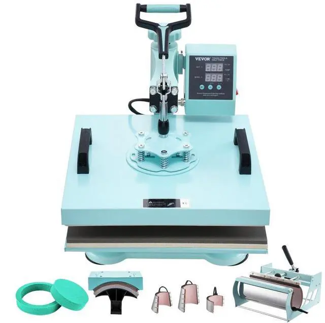 VEVOR Heat Press Machine 15x15 in 8 in 1 with 30oz Tumbler Press T-Shirts Green